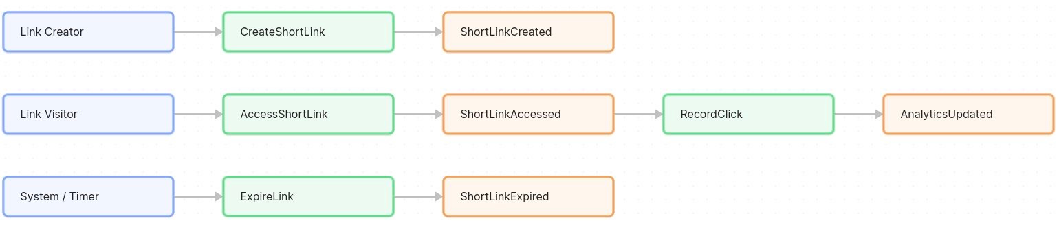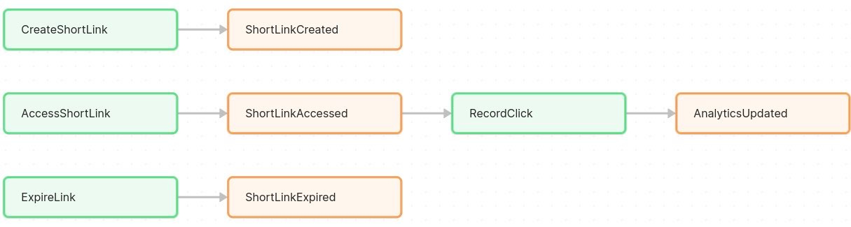 AccessShortLink – a command when a user (or browser) requests a redirect via a short URL. This would lead to a ShortLinkAccessed event (if the code exists).