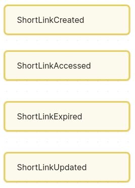 CreateShortLink – a command when a user requests to shorten a URL. This will result (if successful) in a ShortLinkCreated event.