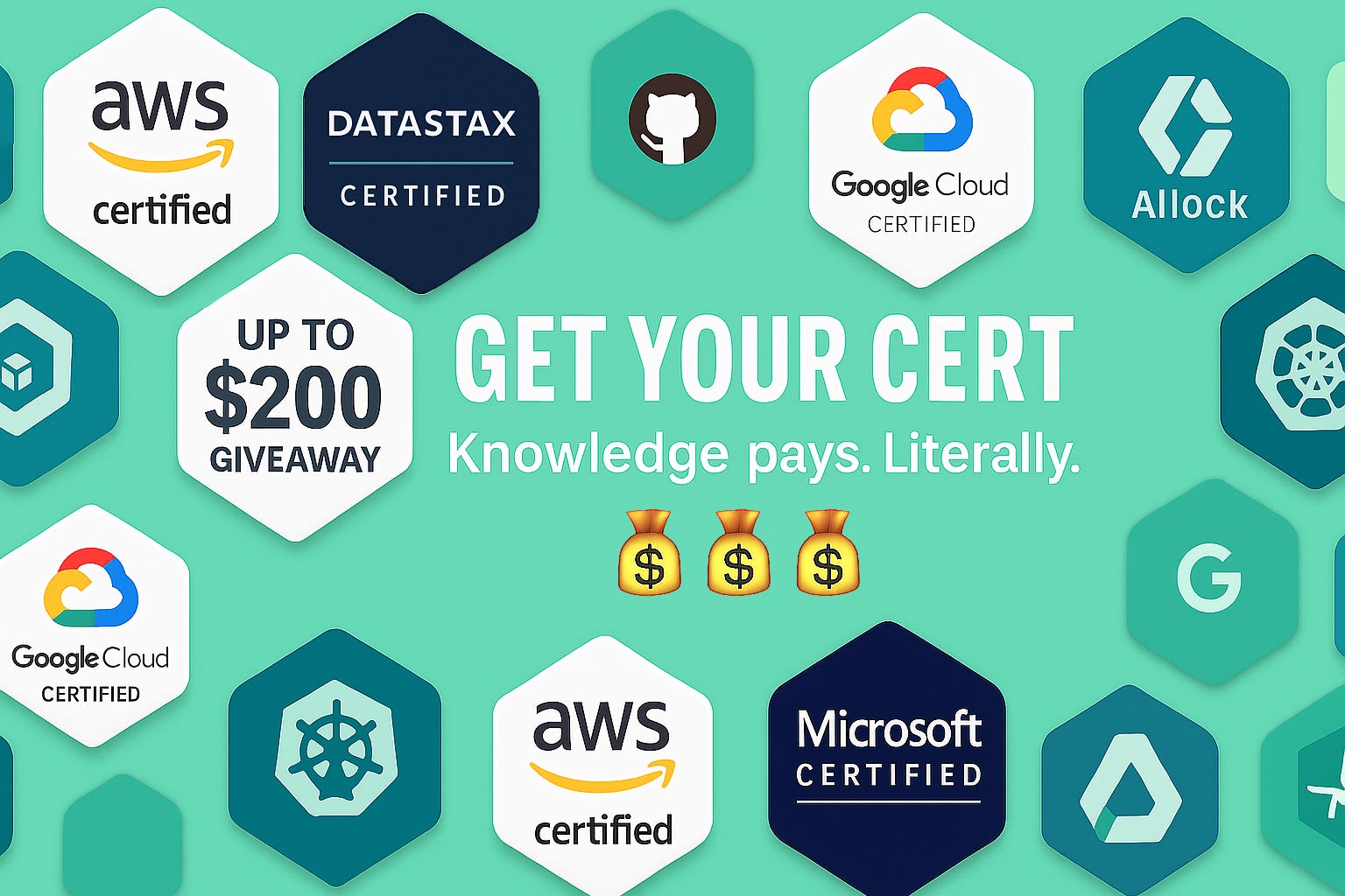 AWS, GCP, Kubernetes, Datastax, GitHub certs - most start around $99 or more.
