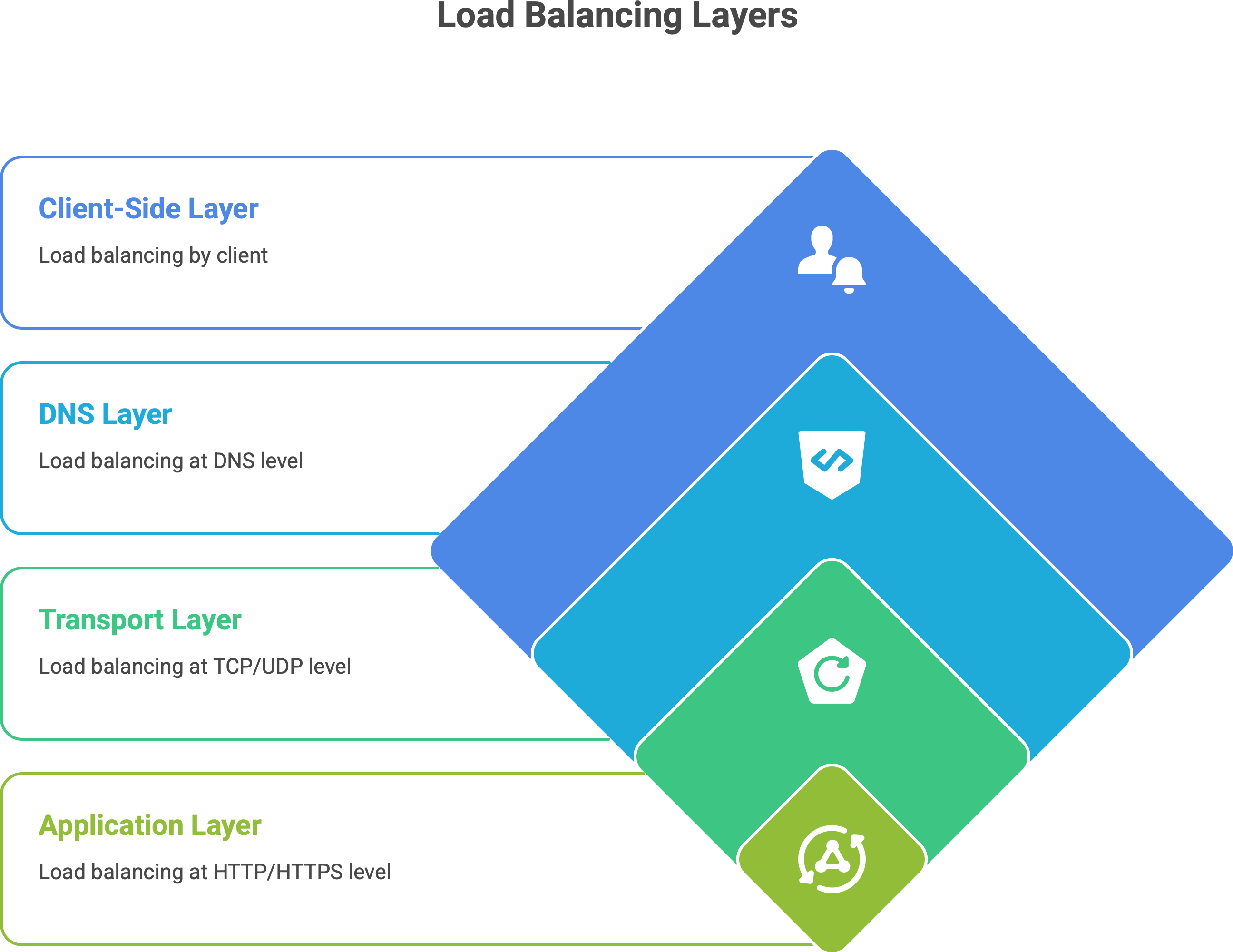 Load balancing doesn’t only happen in one place or one way. It can occur at different layers of the network/application stack, each with a different scope and method.