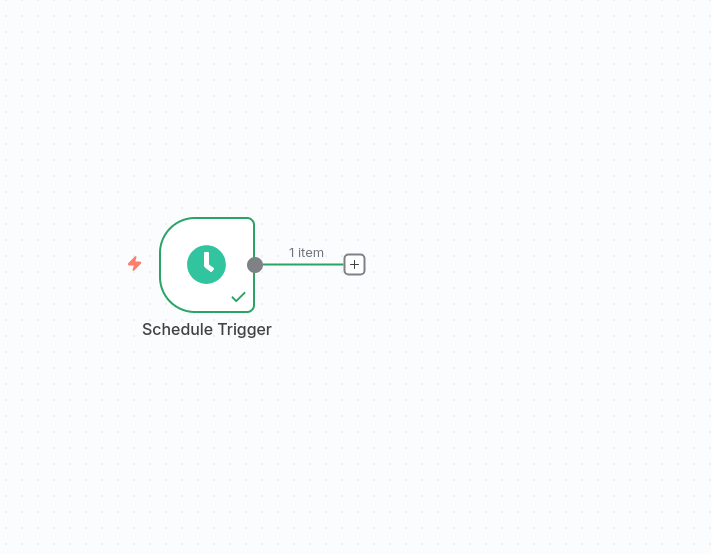 Side note: If you’re following along, add the Schedule node to your n8n canvas first and set the schedule as desired. This will be the starting node that kicks off the whole process at those times.