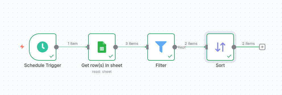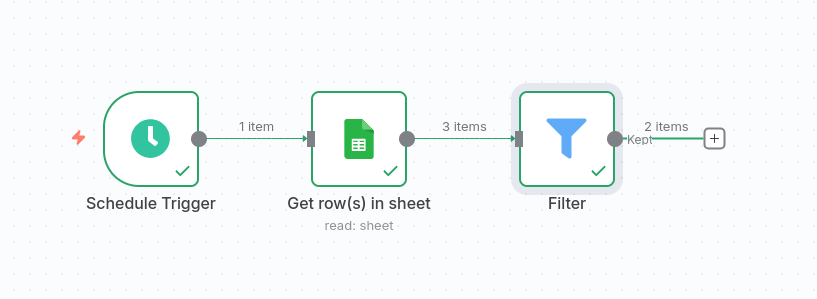 When this runs, the Google Sheets node will go and update that specific row in the sheet to mark it. n8n’s Google Sheets integration takes care of finding the row and updating the cell. After this, our workflow cycle is complete!