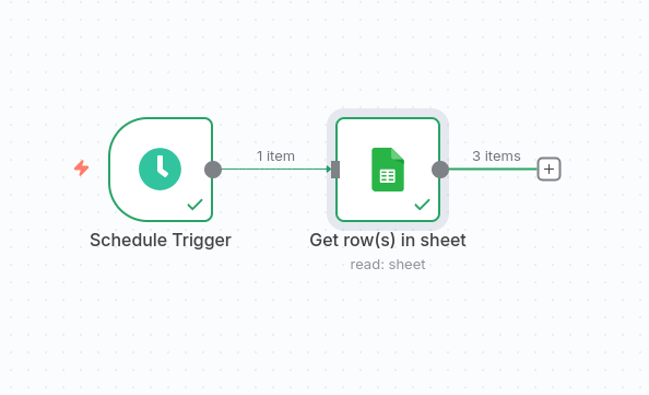 You could just as easily set it for once a day at a specific time (like every morning at 9 AM) – n8n’s Schedule node supports a variety of schedules.