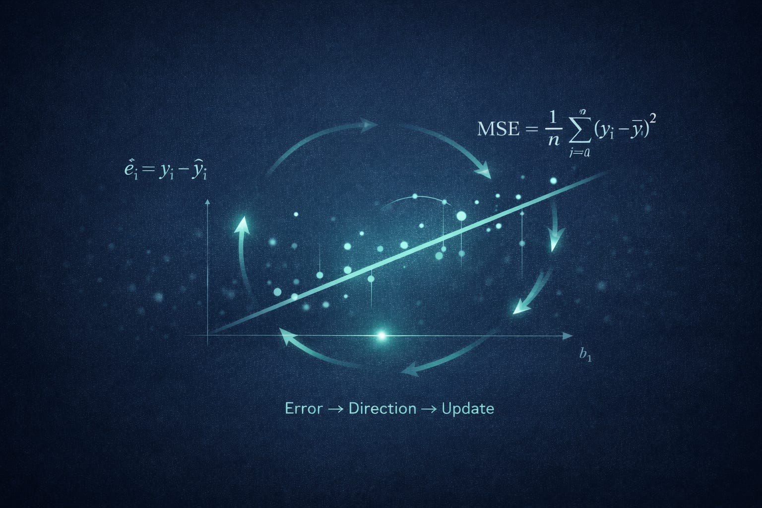 Once you accept that a line cannot satisfy every point, you need a different relationship with “being wrong”. In machine learning, error is not embarrassment. Error is the mechanism by which learning happens.