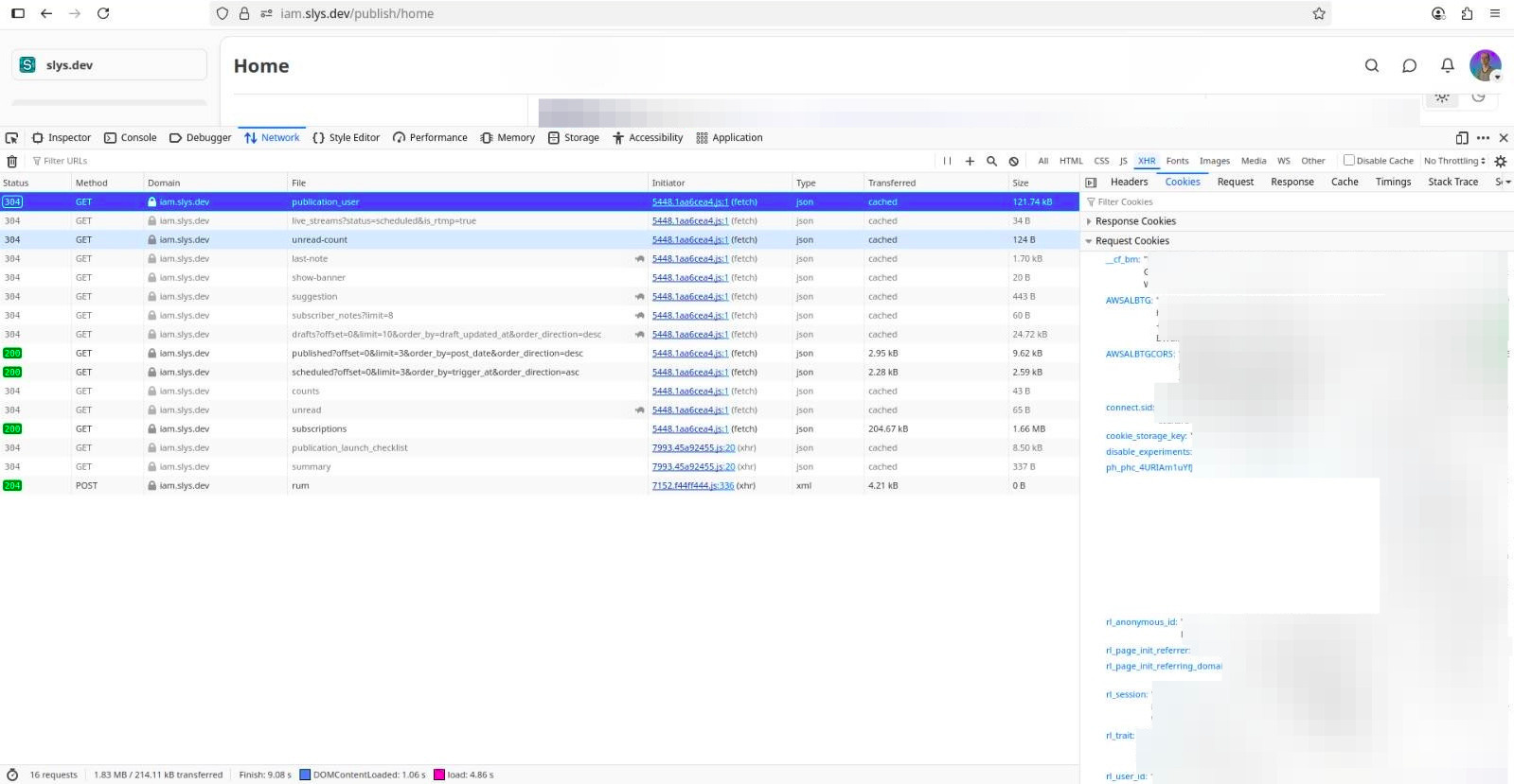 Find the Substack session cookie. Click the Application (or Storage) tab in DevTools, then look under Cookies in the sidebar. You should see an entry for your Substack domain (e.g. mynewsletter.substack.com) or for substack.com. Expand that, and in the cookies list find a name like connect.sid. This is your login session cookie.