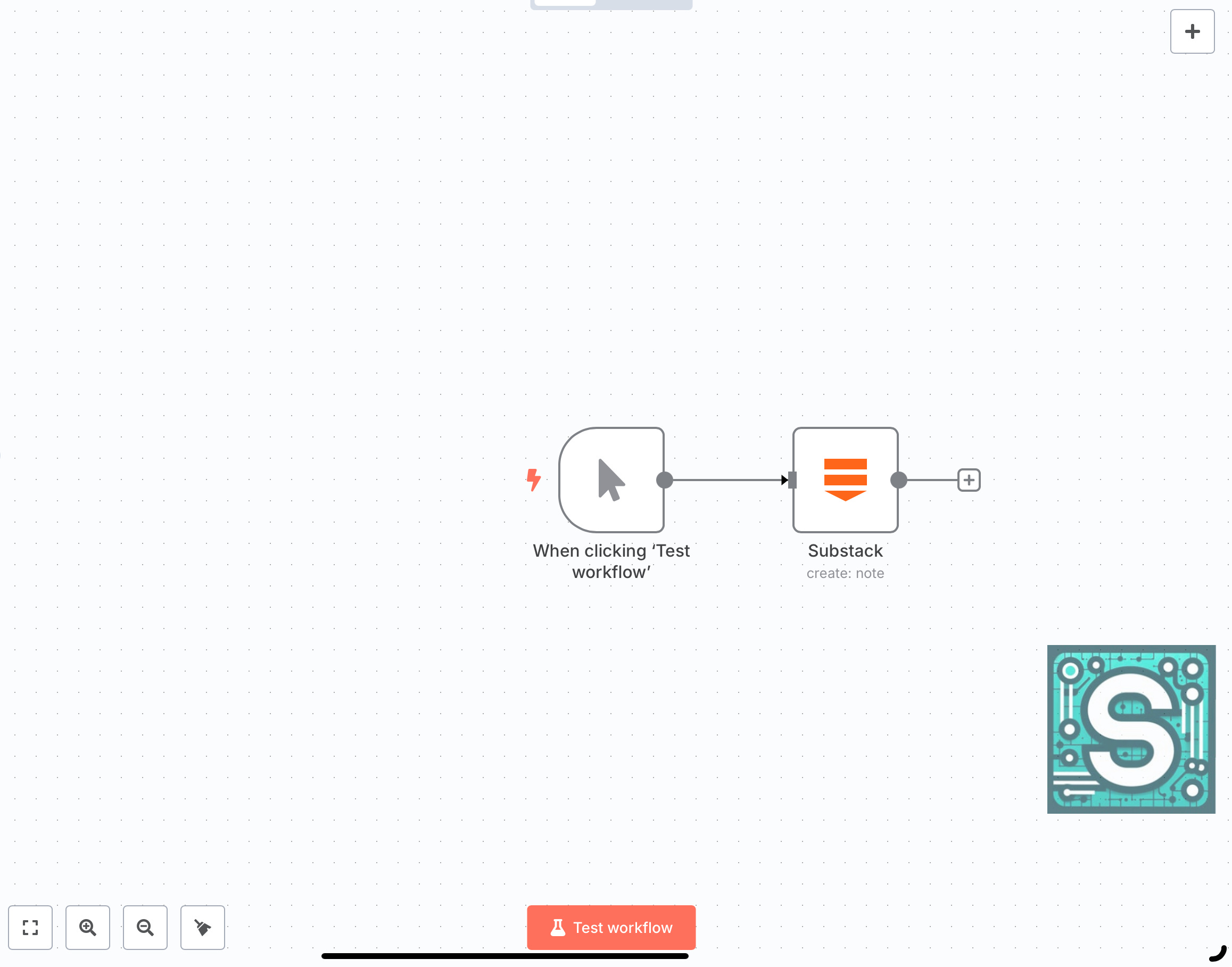 The Manual Trigger will fire, handing off execution to the Substack node, which will create the Note.