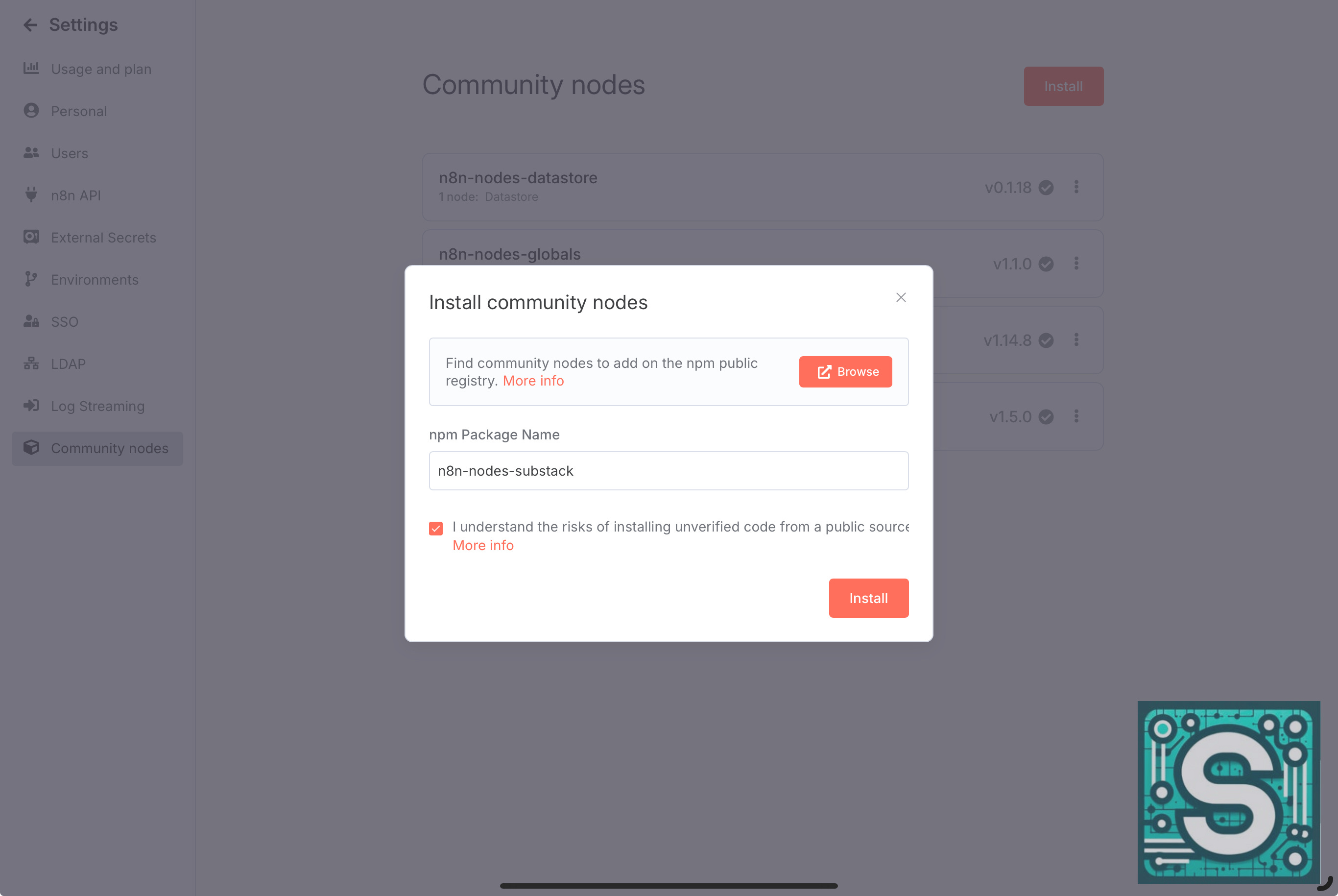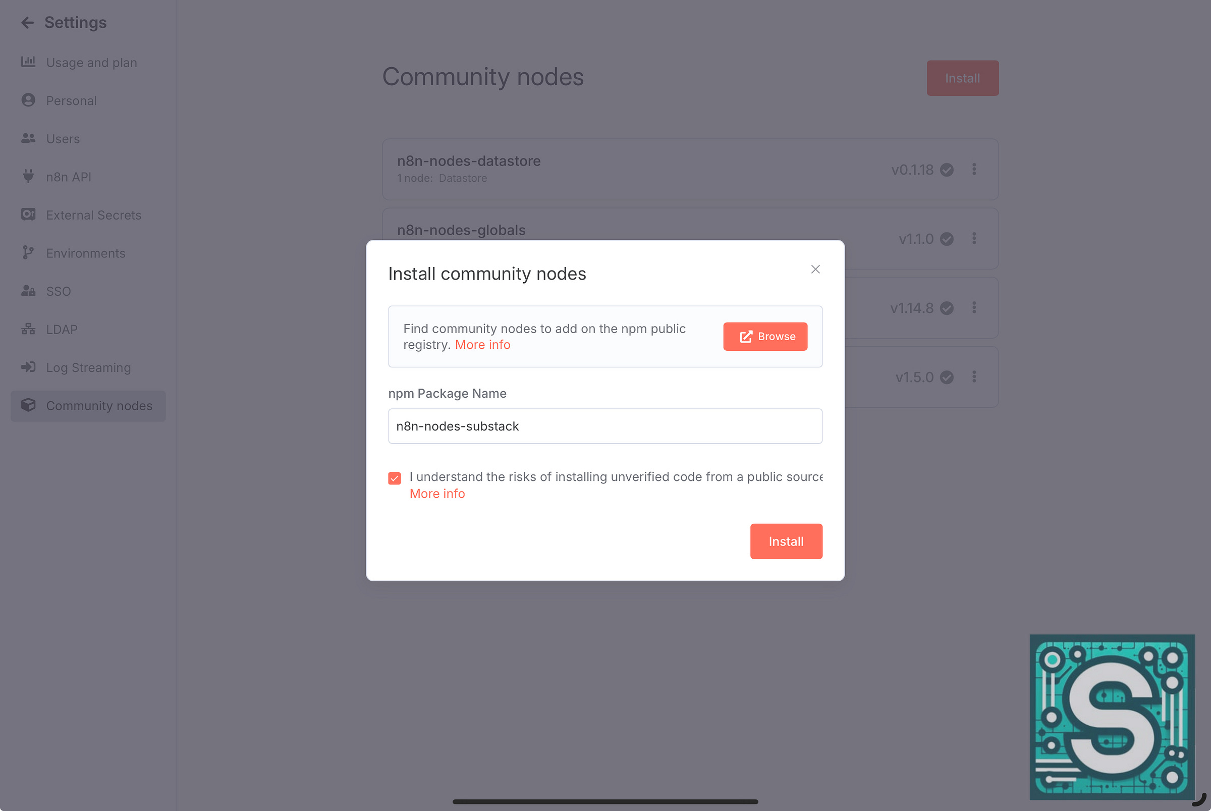 Adding the Substack node to n8n is quick and easy. Just follow these steps to install the community node into your n8n instance.