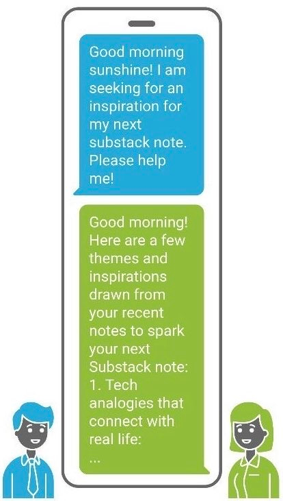 Now I have a helper that listens on Telegram, reads my recent Substack notes and posts, summarizes them, and even helps me come up with newsletter ideas. Itโs like having a ๐ค editor-in-chief who knows all my content.
