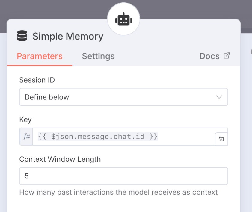 Memory Buffer. I added a Simple Memory node. This stores our chat history so the agent can refer back to earlier messages.
