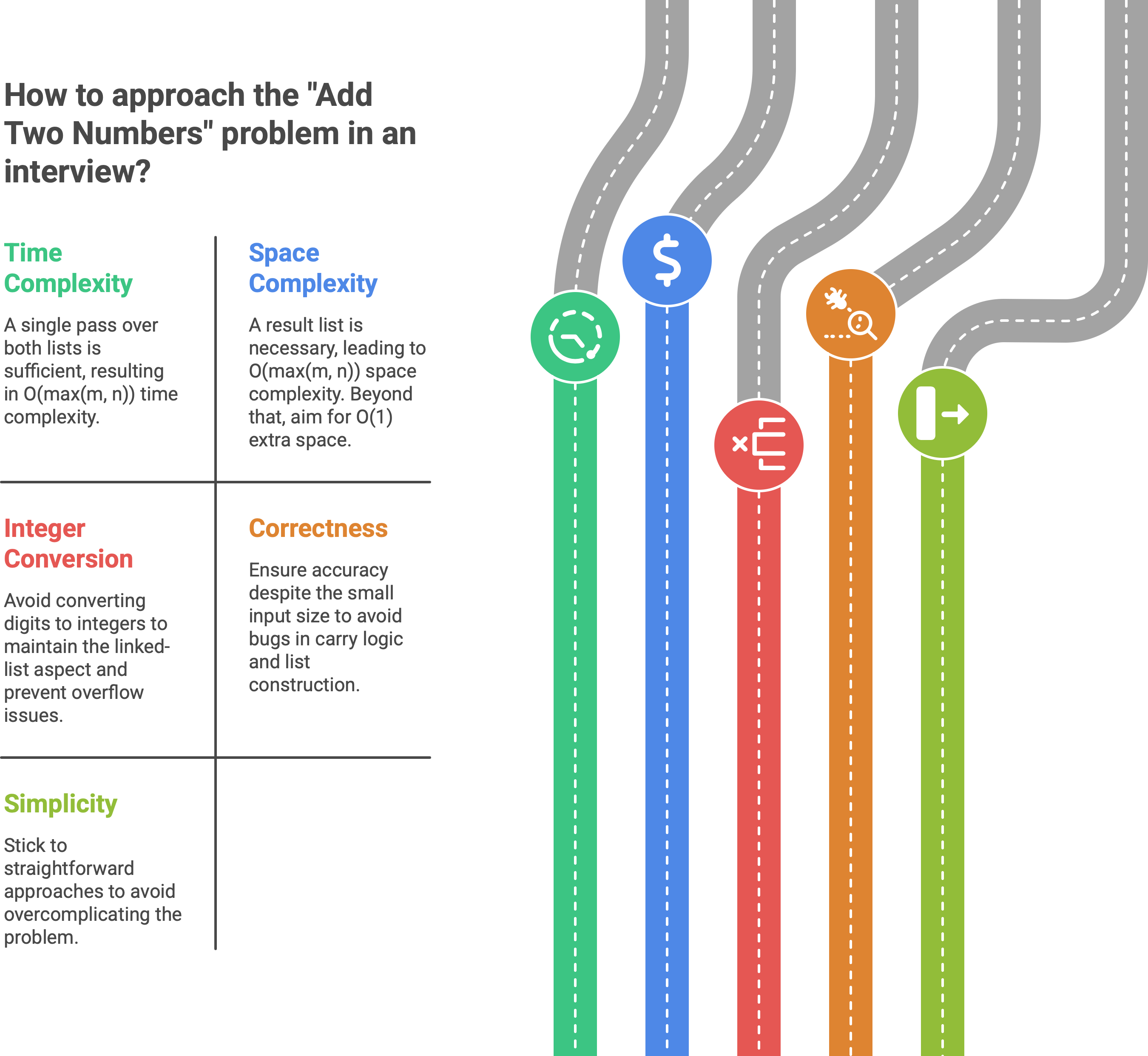 Finally, over-complicating the solution can be its own failure mode. If you find yourself reversing lists, creating stacks, or converting to strings, pause. Ask: “Am I still doing digit-by-digit addition?” If not, you’re probably leaving the clean path.